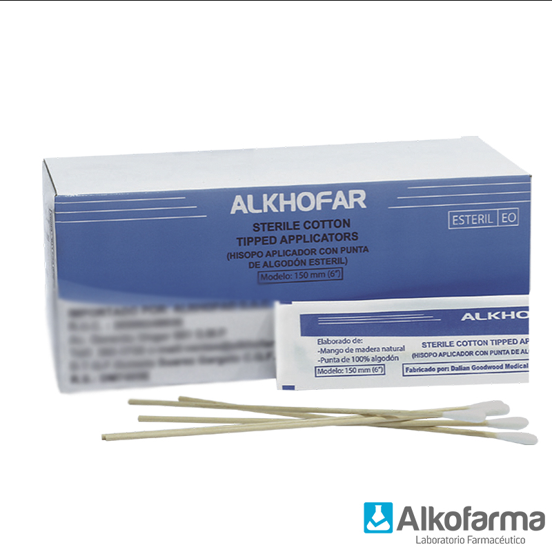 Hisopo de madera con punta de algodón,estéril.